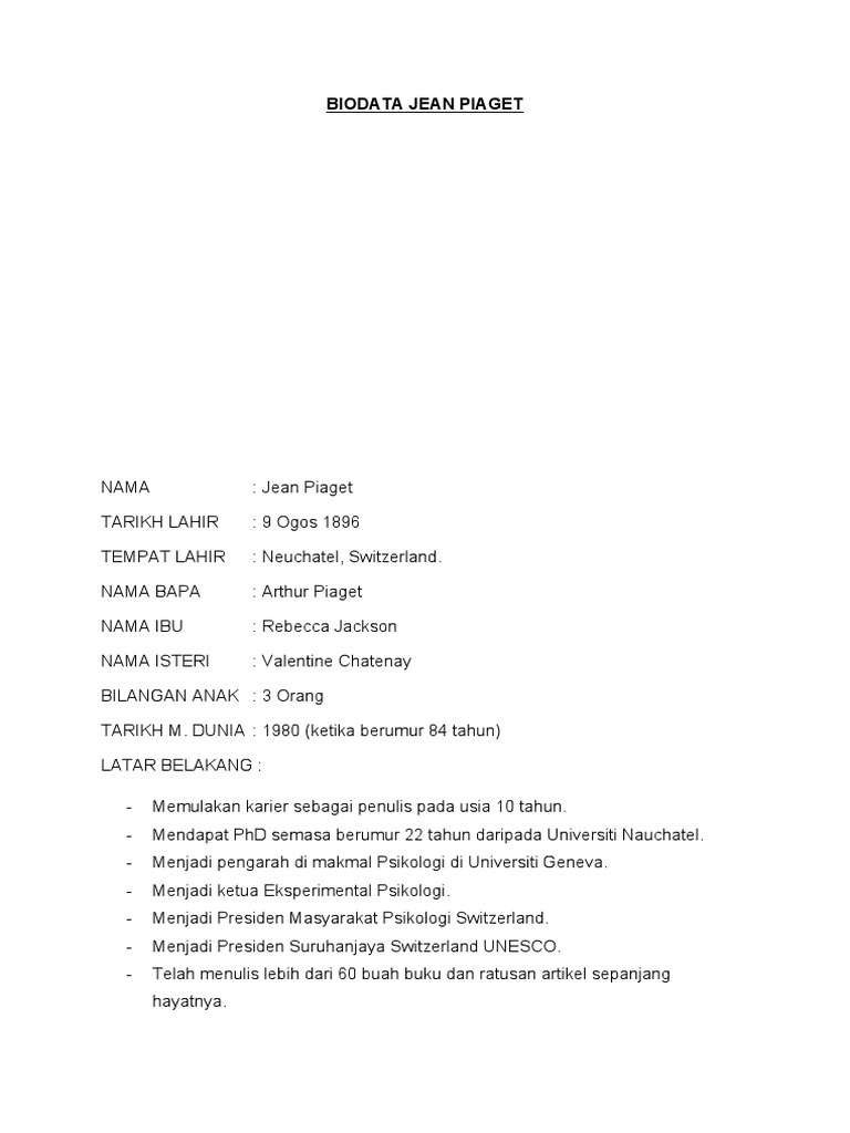 Beliau berasal dari Switzerland dan telah menggunakan model biologi untuk menghuraikan perkembangan kognitif manusia. Jean Piaget meninggal di Genewa pada tangggal 16 September. Teori Dan Pendekatan Psikologi Dalam Masalah Pembelajaran Bahasa Melayu Ringkasan 10 Pendahuluan Tajuk ini akan membincangkan berkaitan teori dan pendekatan psikologi dalam masalah pembelajaran Bahasa Melayu Tingkatan Satu.